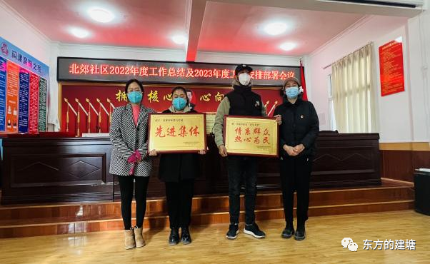 会议表彰了先进集体及个人。汪源宣读《中共建塘镇北郊社区总支部委员会 建塘镇北郊社区居民委员会关于表彰北郊社区“大党委”先进成员单位、先进集体、先进工作者、优秀小组长、先进个人、优秀网格员的通知》,向获奖个人及集体长期为社区建设发展做出的贡献和支持表示感谢,同时希望大家以不断奋发前进的意识,以更加昂扬的斗志和创新的精神,把社区建设得更好。