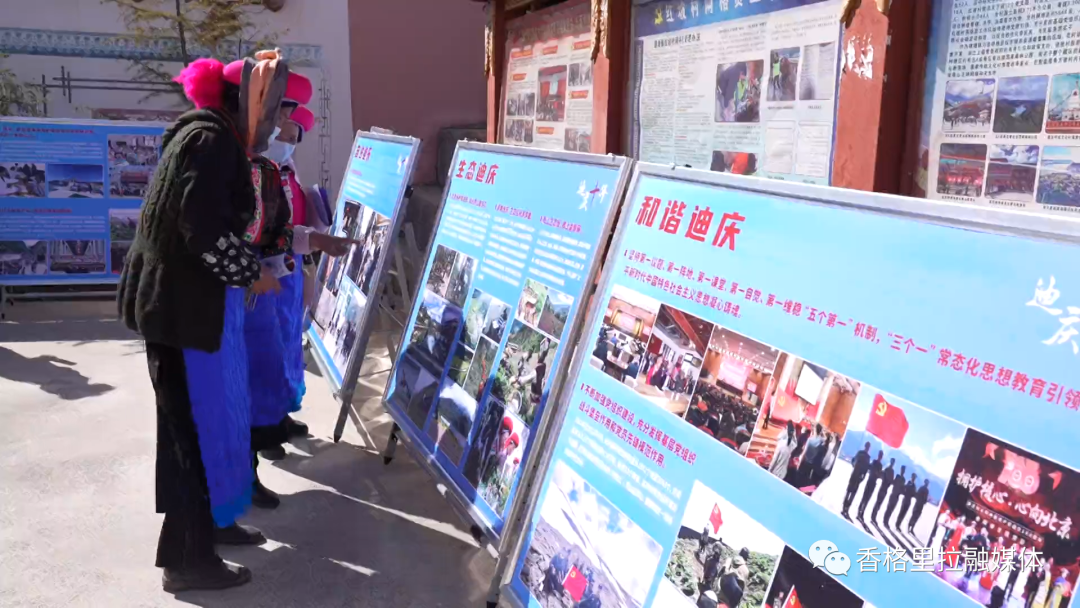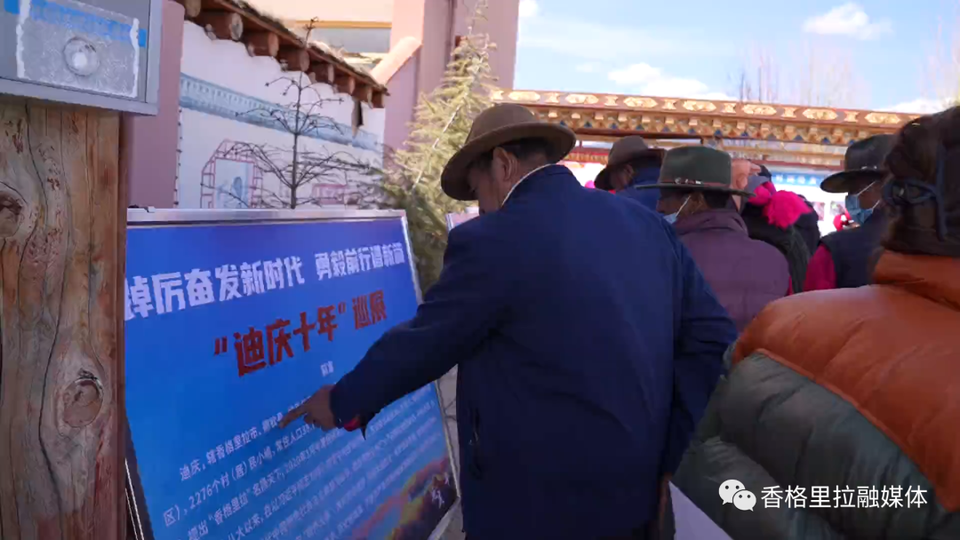 活动最后,广大党员群众观看“迪庆这十年”巡展,通过观看宣传栏,大家纷纷感受到党的十八大以来,迪庆州广大干部群众团结一心、感恩奋进,牢牢抓好稳定、发展、生态、生态和边疆稳固“四件大事”,保持了民族团结进步、社会大局稳定、经济加快发展、民生持续改善、生态保护加强的良好局面。