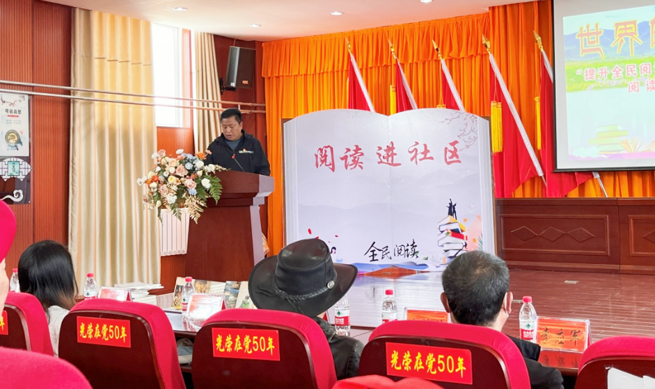 在第二十八个世界读书日到来之际,为进一步倡导社区群众多读书、读好书的文明风尚,营造全民爱读书、读好书、善读书、终身学习的良好社会氛围,4月22日香格里拉市委宣传部、市文化和旅游局、建塘镇人民政府开展了“阅读进社区 书香润建塘”主题读书活动。香格里拉市委宣传部、市文旅系统、建塘镇人民政府、迪庆顺腾文化发展有限公司、迪庆新华书店有限公司、香格里拉新世书局及建塘镇社区成员等170人参加。香格里拉市委宣传部副部长和志宏出席会议并致词。