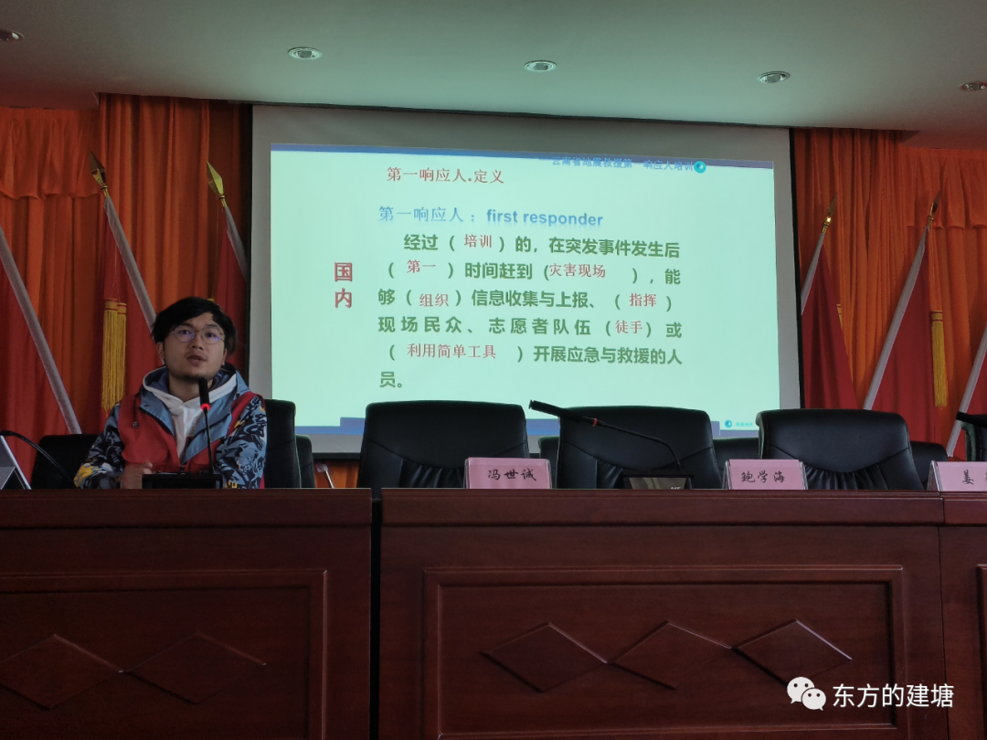 此次培训分两个模块进行,分别为理论教学、实操演练。第一节由迪庆州地震监测预报中心工程师,迪庆州地震应急“第一响应人”培训教官,防震减灾科普传播师,冯世诚老师进行理论模块防震减灾基本常识及第一响应人概念教学。