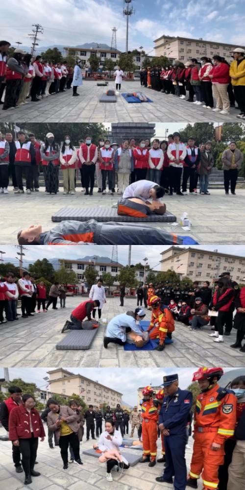 卫生院医护人员以理论与实践相结合的方式,详细讲解应急救护理论知识,包括判断患者意识、呼吸、心跳的方法以及进行心肺复苏的步骤和方法,再通过生动的案例和实际操作演示,直观地展示了开展应急急救的操作要点。
