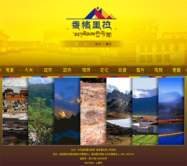 香格里拉门户网站包含香格里拉县党委、人大、政府、政协、旅游、文化、非物质文化遗产、图片、视频和专题网站共十个相对独立的子站,同时为香格里拉旅游、文化、非物质文化遗产、图片、视频和专题网站采用中文、藏文展现。