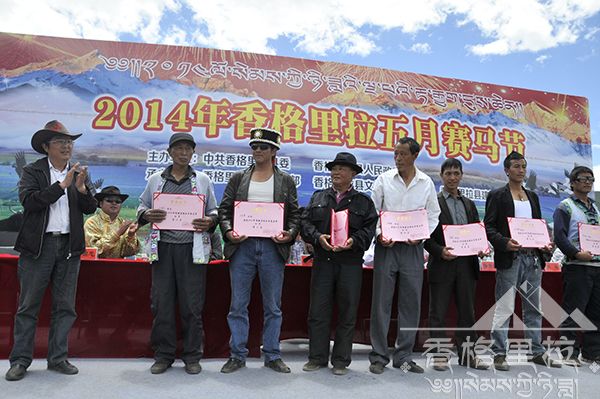 2014年香格里拉五月赛马节在为期3天的活动中,来自香格里拉县建塘、洛吉、格咱等乡镇以及大理州的选手和108匹骏马完成了马术表演、跑马拾哈达、跑马射击、跑马射箭、马速赛、走马赛等10个单项比赛以及射箭、射弩等传统民族体育比赛,6月4日下午圆满闭幕。