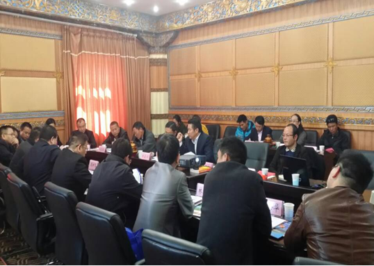 2日上午,考察团一行与州委、州政府、州外事和商务局、州工信委、州招商合作局、香格里拉县招商合作局、箐口工业园区办及州内部分企业在州政府一楼藏式会议室召开了座谈会,座谈会由州委常委、州委秘书长刘家训主持。