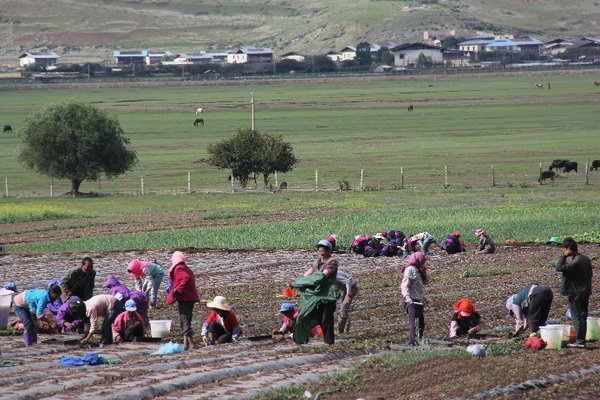 7月26日,香格里拉市建塘镇布伦村民正在忙着种植玛咖。 (杨云萍 摄影报道)