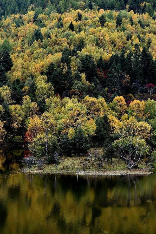 这是10月13日拍摄的云南香格里拉普达措国家公园的迷人秋色。