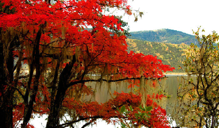 这是10月13日拍摄的云南香格里拉普达措国家公园层林尽染的迷人秋色。