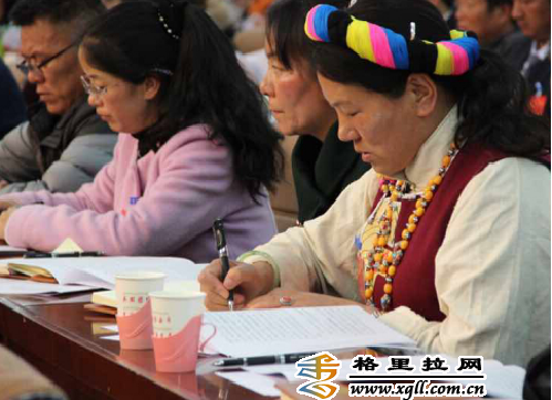 政协迪庆州十二届一次会议现场,委员、列席人员认真听取报告。
