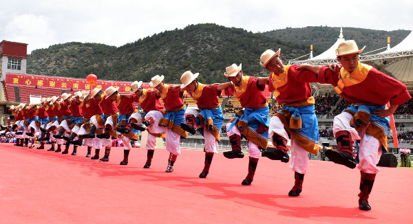 香格里拉五月民族传统赛马节暨文化科技卫生“三下乡”集中示范活动在香格里拉五凤山体育场隆重开幕