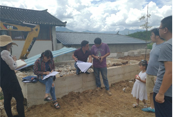 8月7日,上江乡良美村村三委成员及驻村工作队入户检查跟进人居环境质量提升工程改造项目施工情况。