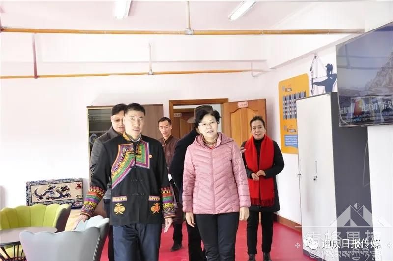 在迪庆州工人文化宫·香格里拉市职工服务中心,调研组查看了院内工会元素的相关设施、主楼各功能房及室外运动场地等,并对迪庆州工人文化宫·香格里拉市职工服务中心改造项目工作给予了充分肯定。王树芬指出,文化宫在后期的使用中要加强规范,加强监管,突出职工服务中心的公益性、服务性,让所有职工共享成果。工会组织在工作中要切实加强对职工思想政治引领,引导职工群众听党话、跟党走,认真学习习近平总书记关于工人阶级和工会工作的重要论述,以习近平新时代中国特色社会主义思想教育引领职工。