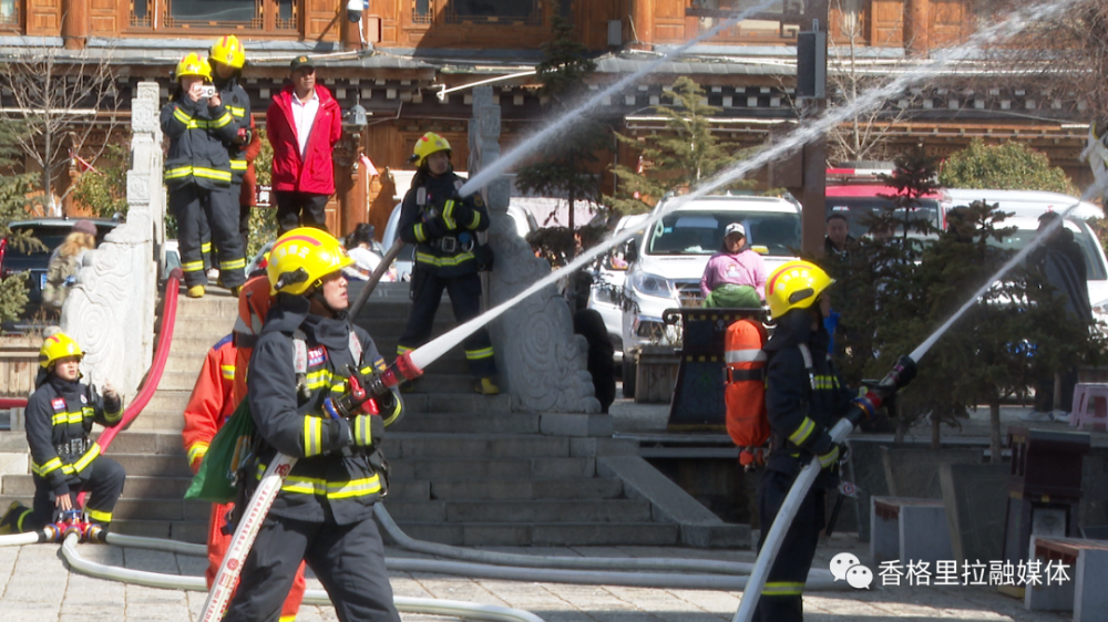 香格里拉市2023年地震应急实战演练拉开序幕,在香格里拉剧院实战演练安保维稳、搭建帐篷、医疗救护等工作。震后,市消防救援大队模拟接报古城发生一起民房火灾,古管委、市消防救援大队到达火灾发生地进行火灾应急处置。并现场对携行器材装备、战勤保障物资进行了点验。在独克宗小学,模拟地震应急警报响起,学生们在教师组织带领下,用双手护住头部按照预定路线迅速有序地撤离到学校运动场避险,并对学生进行心理疏导,确保师生生命安全。地震发生后,物资是抗灾重要保证,市发改局按照模拟应急部门的调拨指令,紧急组织帐篷、折叠床、被服以及其他生活必需品等救灾物资运往灾区,保障灾区群众生活需要。