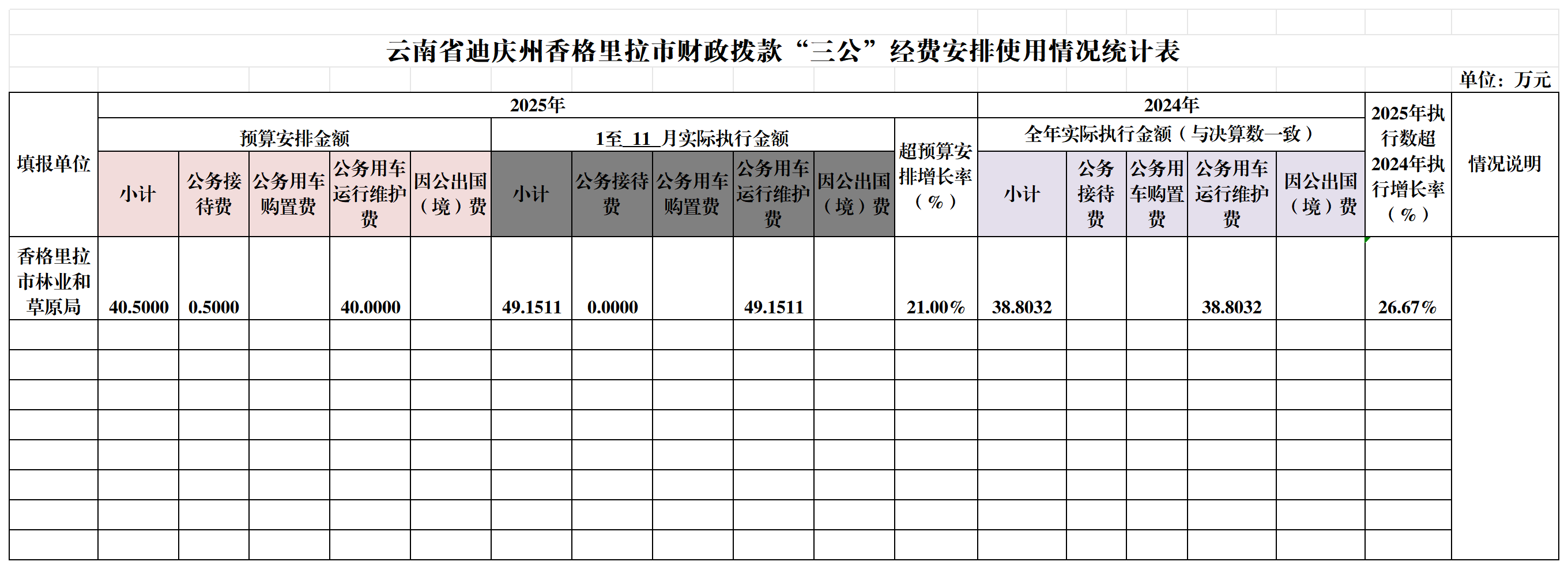 香格里拉市林业和草原局2025年三、四季度“三公”经费公开