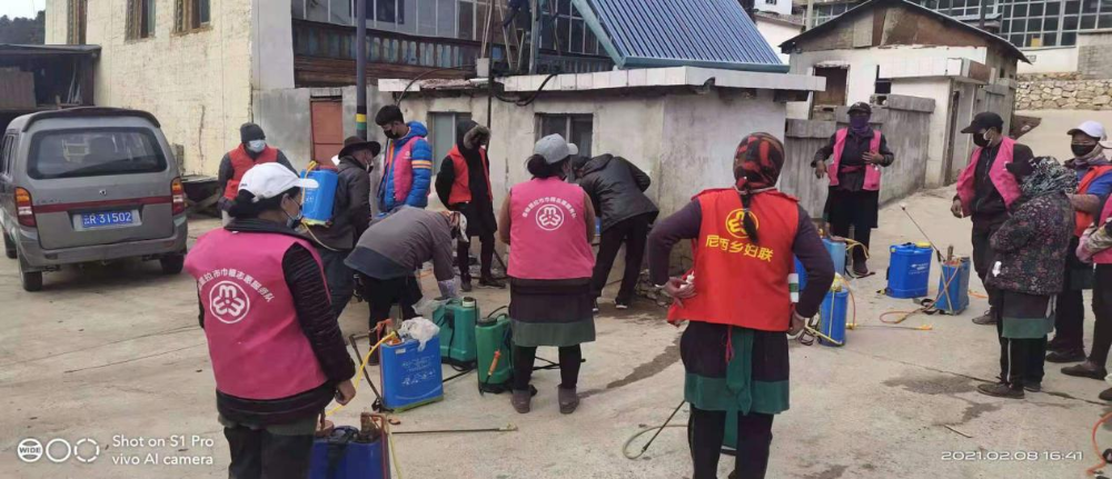 在新型冠状病毒感染的肺炎疫情防控工作中,除所有干部和基层一线工作人员之外,在防疫阻击战的第一线,还有这样一群可爱的人。她们在村囗对进出车辆进行消毒处理,并积极响应办事处号召,开展爱国卫生运动,打造防疫战线中的“美丽庭院”,为坚决打赢疫情防控阻击战贡献巾帼力量。她们便是尼西乡铿锵玫瑰——尼西乡妇联干部。