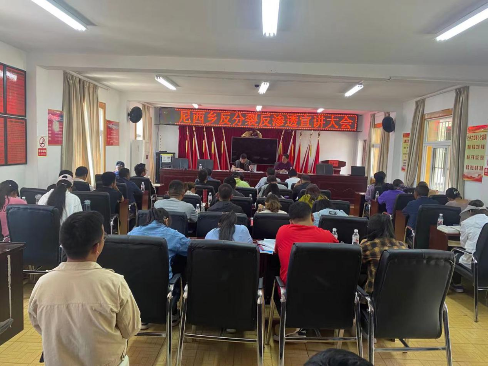 为进一步增强干部群众在反分裂反渗透斗争中的政治意识、大局意识、忧患意识和责任意识,牢固树立“稳定压倒一切”的思想,巩固辖区民族团结、社会稳定思想基础。进一步开展好公开揭批十四世达赖反动本质深入扎实开展反分裂反渗透斗争学习宣讲工作。根据上级工作安排,全乡干部职工、各村村两委及驻村工作队全员于8月5日在大会议室召开“尼西乡反分裂反渗透宣讲会”。