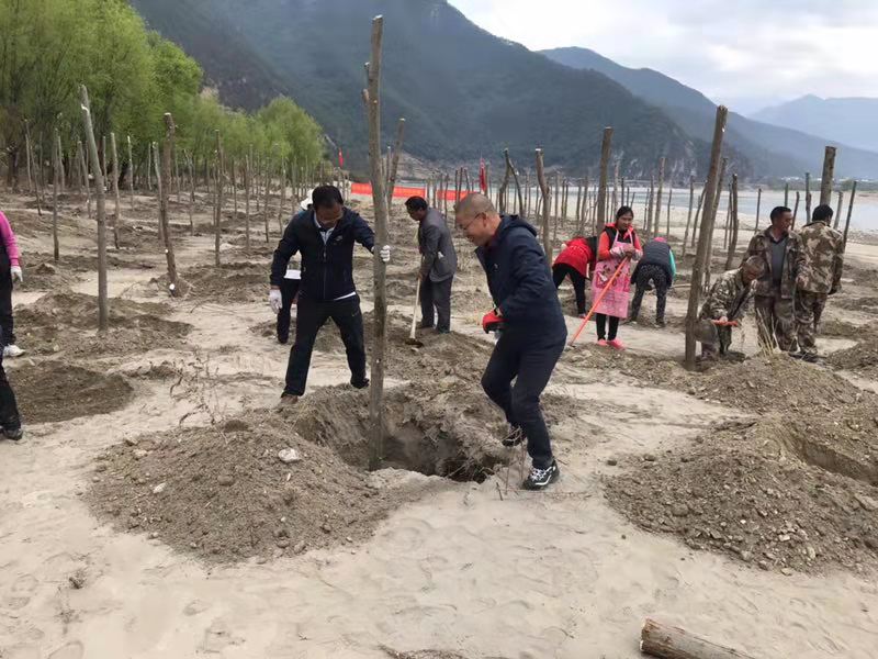 正值植树节到来之际,香格里拉市审计局驻村工作组、千促工作队员及上江乡格兰村委会党员干部一同到金沙江畔开展义务植树活动。此次活动旨在通过扶贫干部带头开展植绿护绿行动,树立村民的环保意识,传播绿色理念。