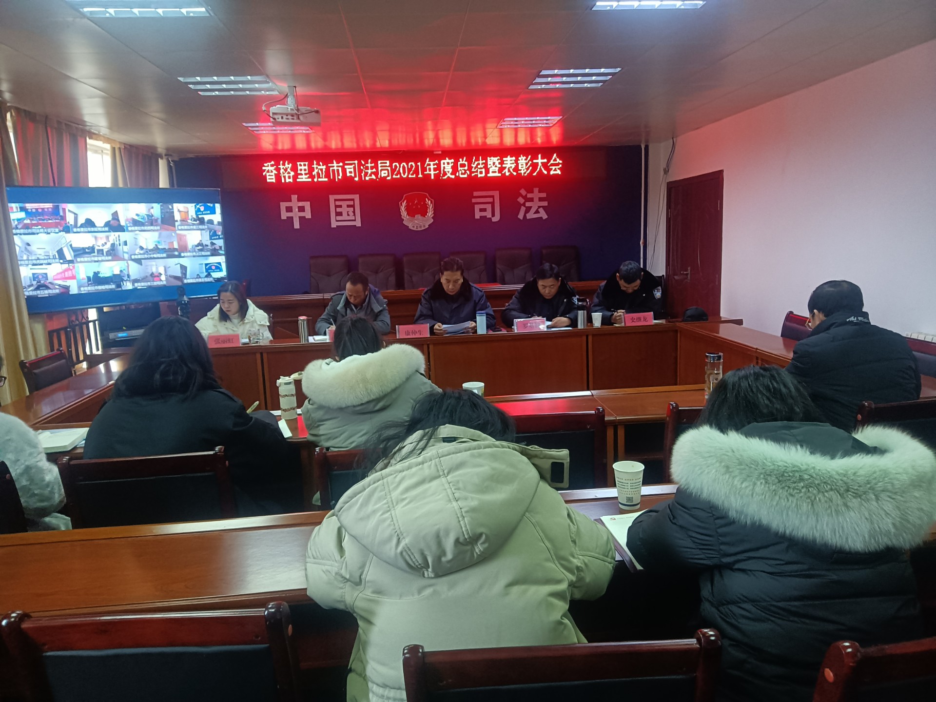 2022年1月25日上午,香格里拉市司法局召开2021年全市司法行政工作总结暨表彰大会,认真盘点全市2021年司法行政工作,分析查找工作短板弱项,总结全年成绩和经验做法,提前谋划2022年工作思路。香格里拉市司法局党组书记、局长康仲生进行工作安排,副局长和建东主持会议。全市十一个基层司法所以视频形式参会。