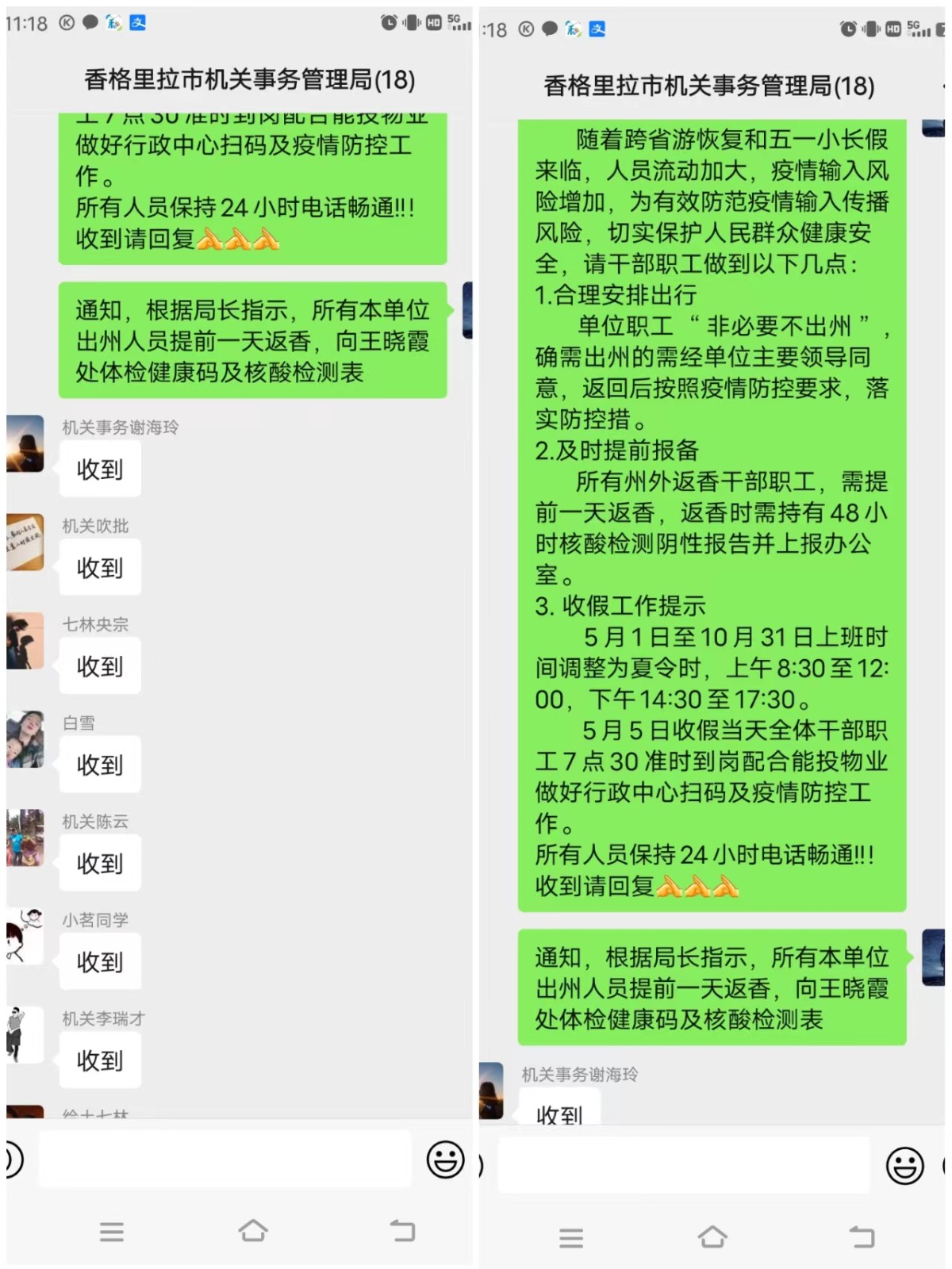1、要求本单位出州人员提前一天返香,并向单位提交48小时内的核酸检测阴性报告,病做好健康监测、隔离管控的措施。