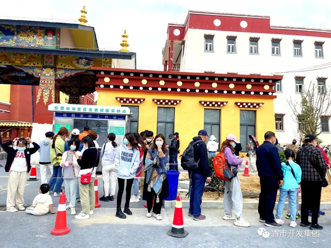 旅游高峰期正是人员大量流动的时候,更是做好疫情防控、提升服务质量的关键期,景区积极推进优质服务规范化、常态化、人性化,在实践中进行创新,提升景区品质,为“世界的香格里拉”品牌打造贡献一力量。同时,在高峰期期间,各单位齐心协力,建塘社区服务中心在景区停车入口设立了免费核酸检测点,为景区职工及广大游客提供免费的核酸检测服务;共青团迪庆州委、香格里拉团市委在景区停车场入口设立了志愿服务点,为广大游客免费提供开水、药品等物品,热心为游客提供咨询服务;香市松赞林寺管理局、尼旺宗派出所、尼旺宗消防救援站、松赞林寺民主管理委员会及景区公司联合在景区寺顶广场设立便民服务点,方便游客休息乘凉;景区各部门员工坚守岗位、尽职尽责、将高峰期旅游接待工作做细、做实,为广大游客营造了安全、有序的游览环境。