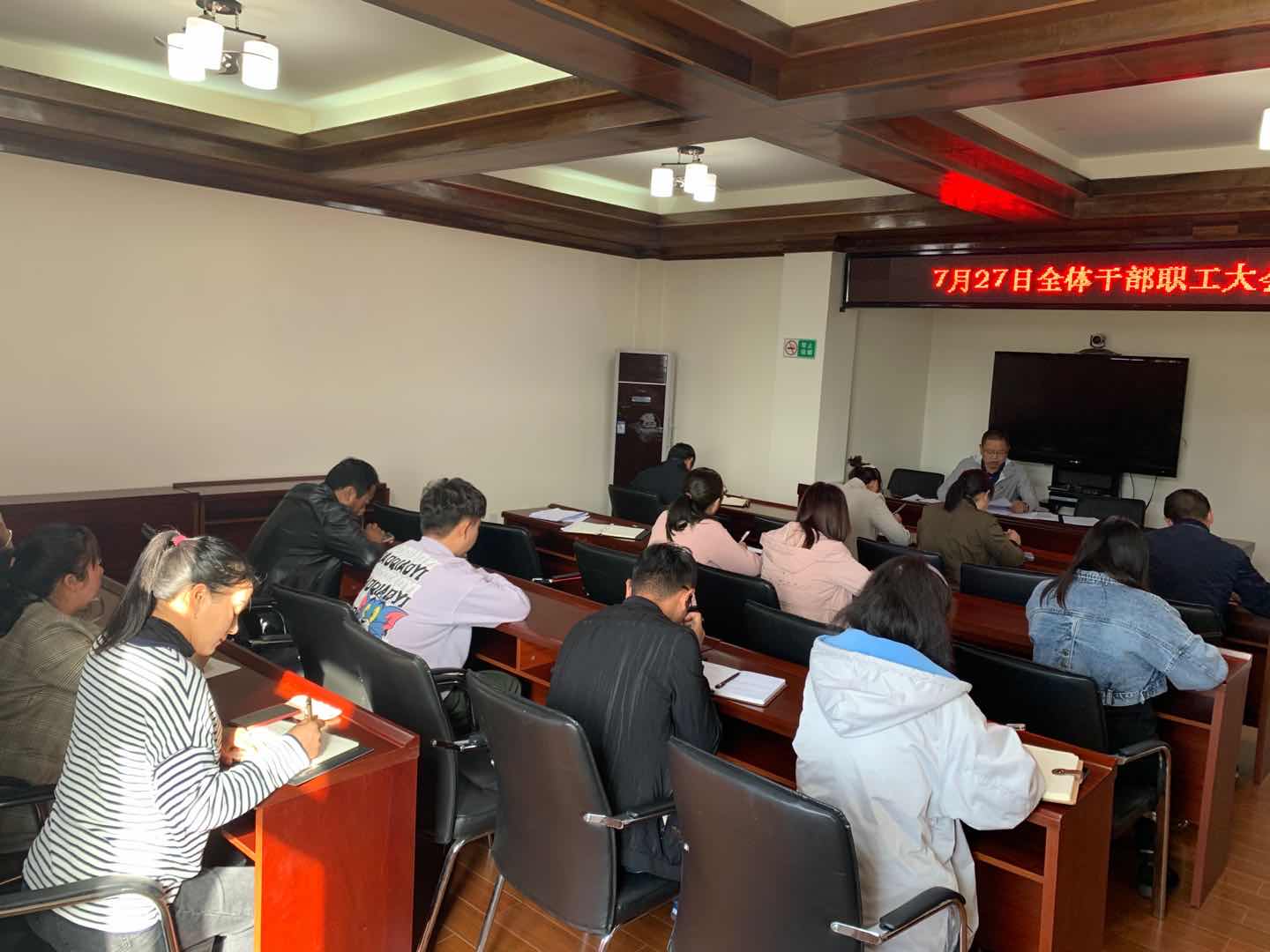 香格里拉市审计局全体干部职工参加集体学习,市委第二巡查组成员列席会议。