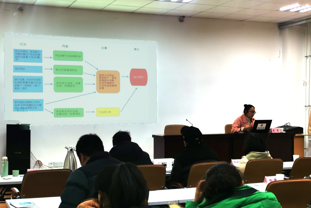 根据培训班的日程安排,香格里拉市审计局经责办主任董娇以“充分发挥审计监督作用,促进领导干部履职尽责”为题开展专题讲座。培训围绕《中华人民共和国审计法》、《党政主要领导干部和国有企事业单位主要领导人员经济责任审计规定》,从领导干部经济责任审计的概念、发展历程和新要求;经济责任审计的对象、审计的权限和审计的内容;如何界定领导干部经济责任;经济责任审计结果的运用;审计常见问题案例等方面将理论与案例相结合进行了深入浅出的讲解。