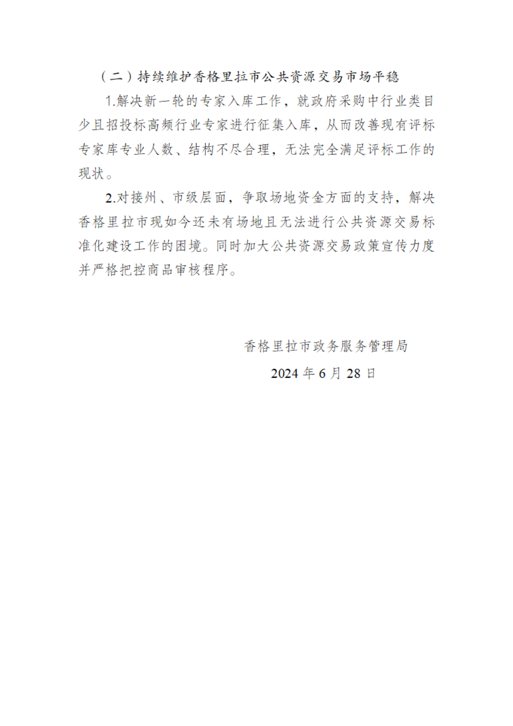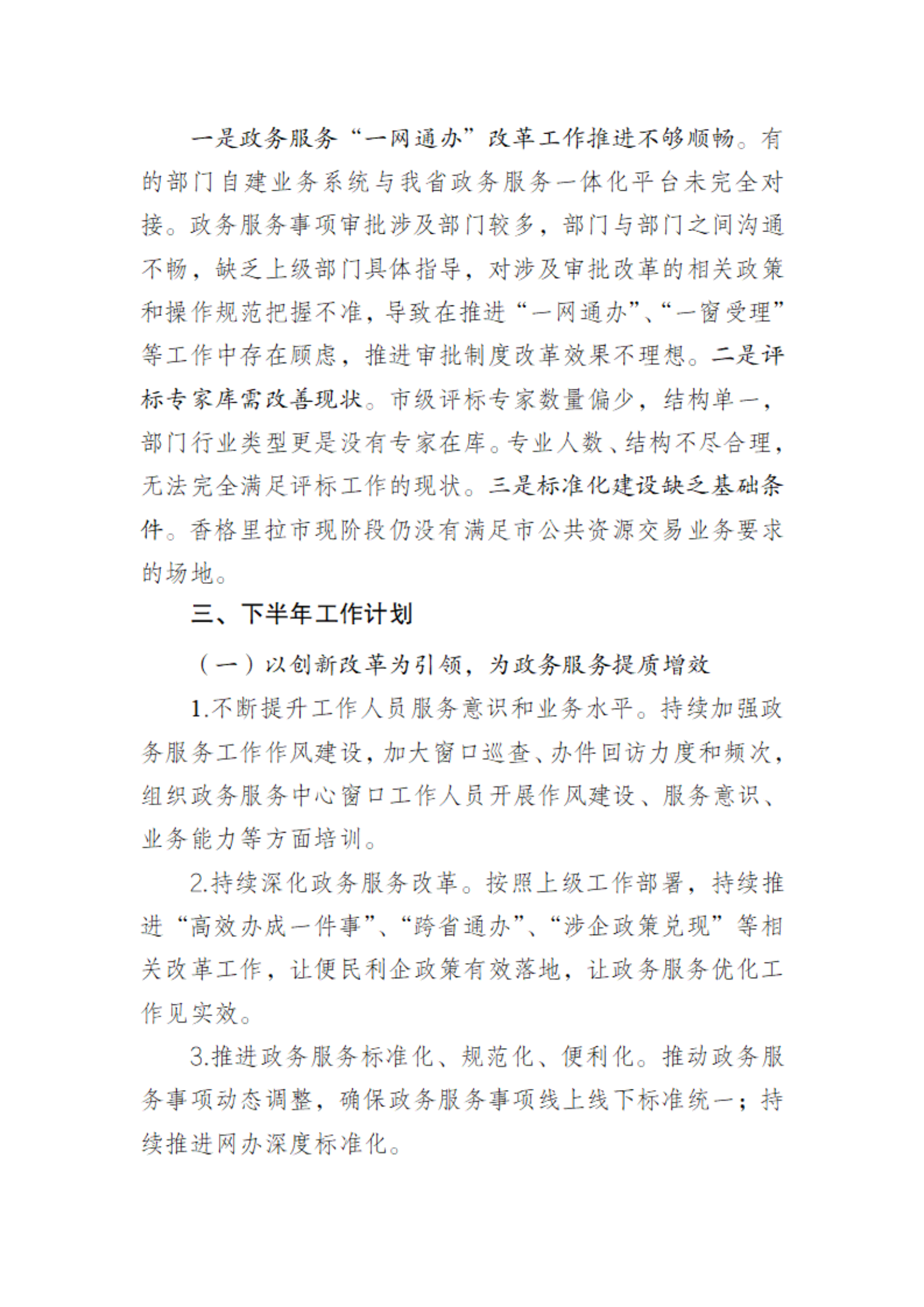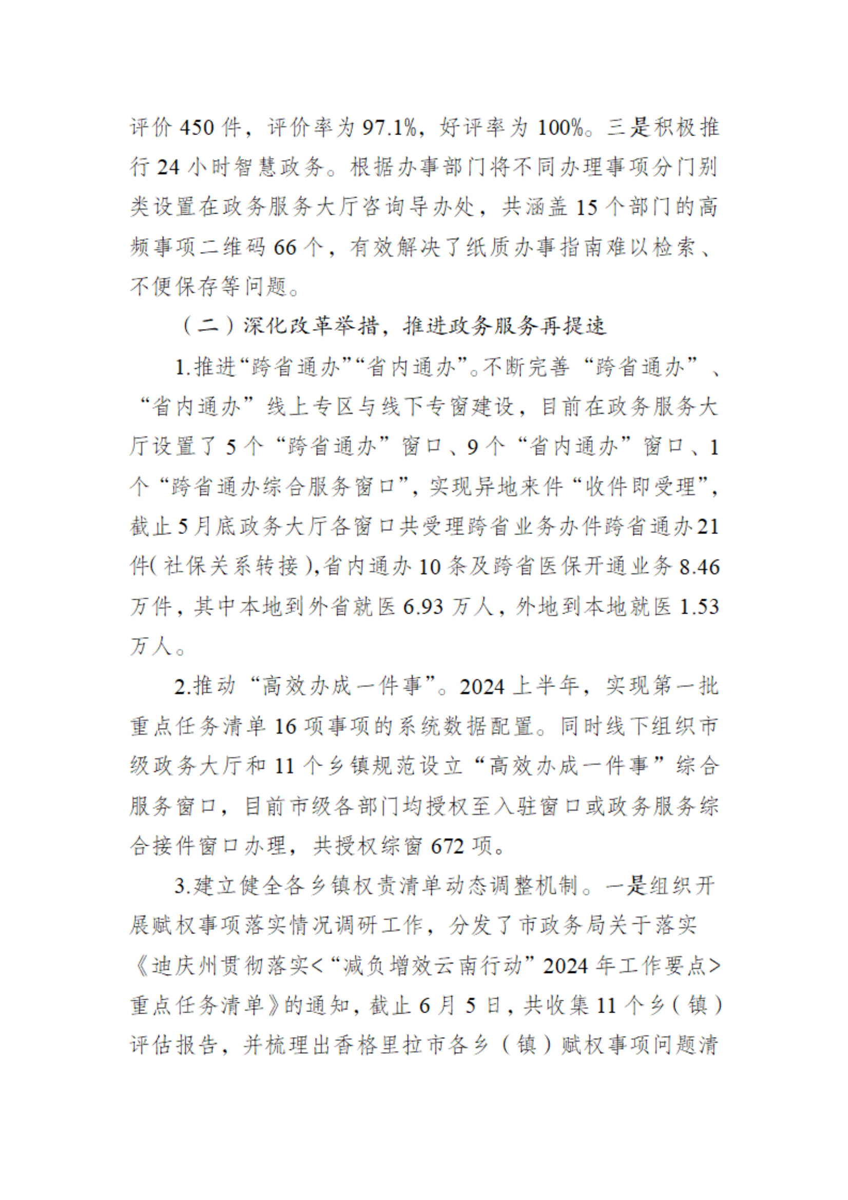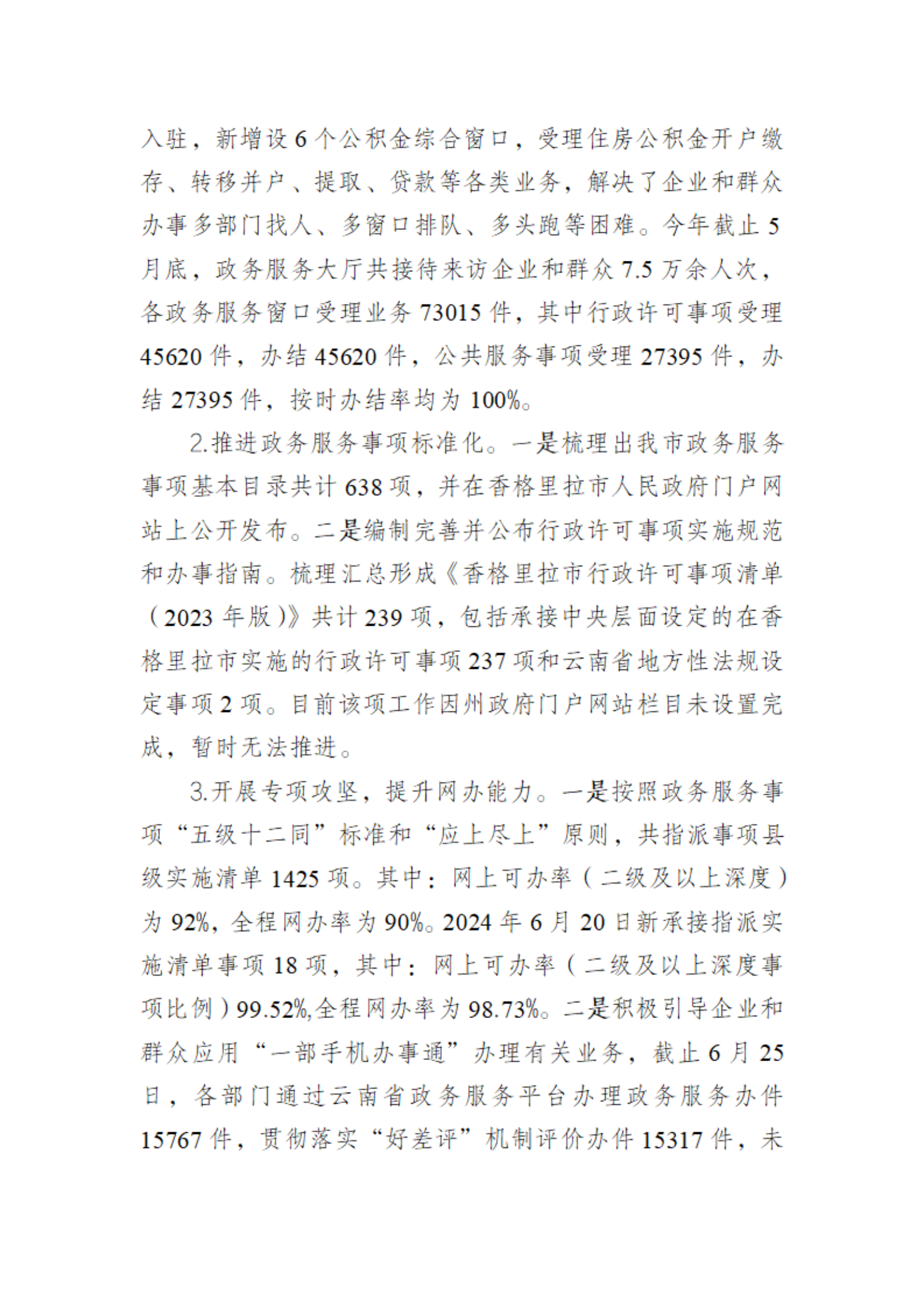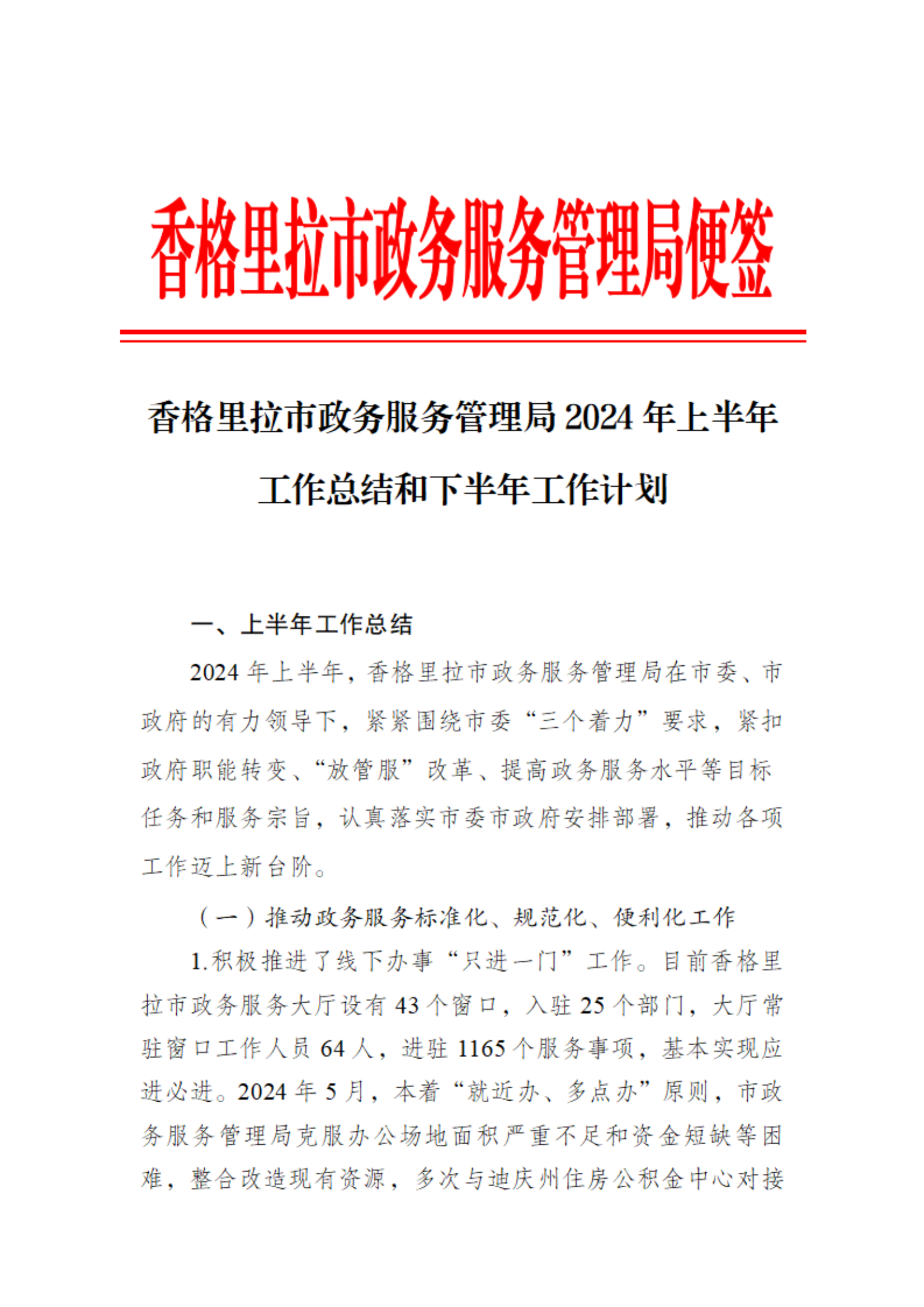 香格里拉市政务服务管理局2024年上半年工作总结和下半年工作计划